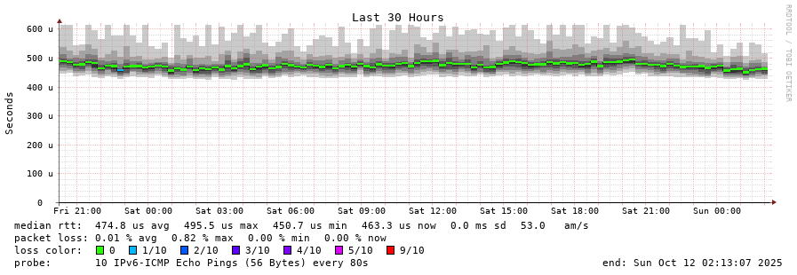 traceroute to 2606:4700:4700::1111 (2606:4700:4700::1111), 30 hops max, 80 byte packets - Generated at 2025-10-12 02:00:01