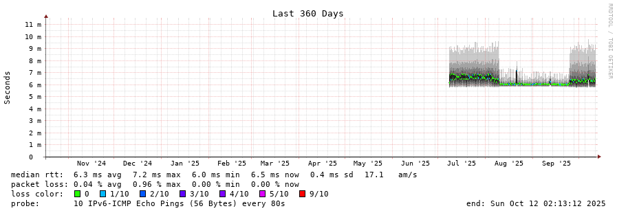 traceroute to ns1.gcorelabs.net (2a03:90c0:9990::1053), 30 hops max, 80 byte packets - Generated at 2025-10-12 02:00:01
