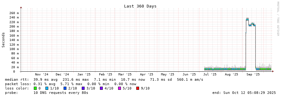 traceroute to 2001:7fe::53 (2001:7fe::53), 30 hops max, 80 byte packets - Generated at 2025-10-12 05:00:01