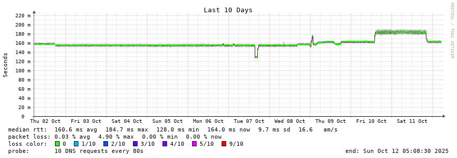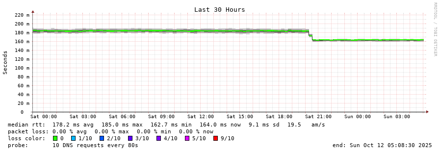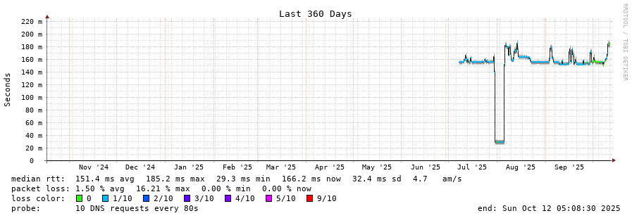 traceroute to 2001:7fd::1 (2001:7fd::1), 30 hops max, 80 byte packets - Generated at 2025-10-12 05:00:01
