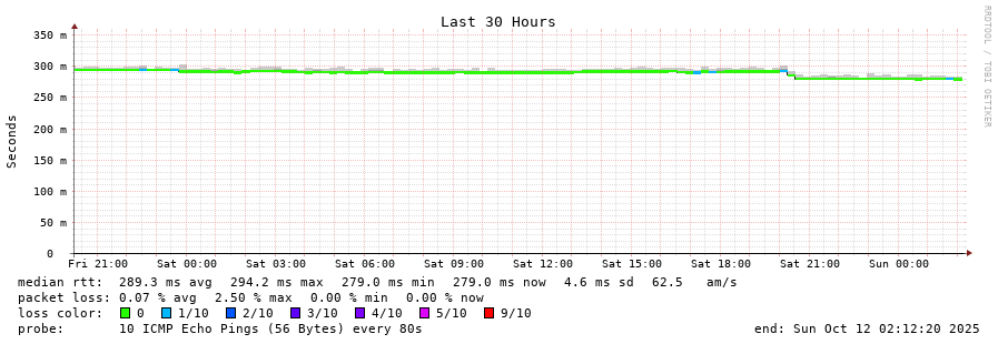 14 > unknown.telstraglobal.net (210.176.138.134) [AS4637] 285.672ms 285.716ms 285.677ms