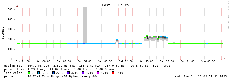 traceroute to 122.160.40.1 (122.160.40.1), 30 hops max, 60 byte packets - Generated at 2025-10-12 01:45:01