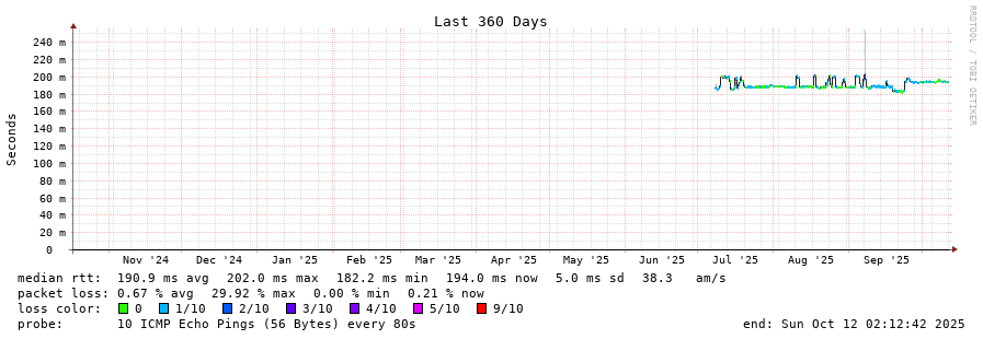 traceroute to 203.154.249.2 (203.154.249.2), 30 hops max, 60 byte packets - Generated at 2025-10-12 01:30:01