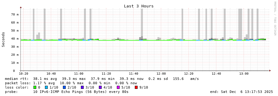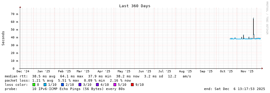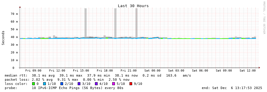 traceroute to 2c0f:5400:2:15::1 (2c0f:5400:2:15::1), 30 hops max, 80 byte packets - Generated at 2025-12-06 13:00:01