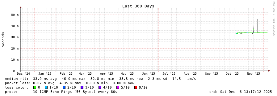 traceroute to 5.181.25.27 (5.181.25.27), 30 hops max, 60 byte packets - Generated at 2025-12-06 13:00:01