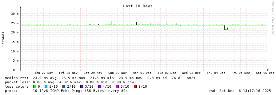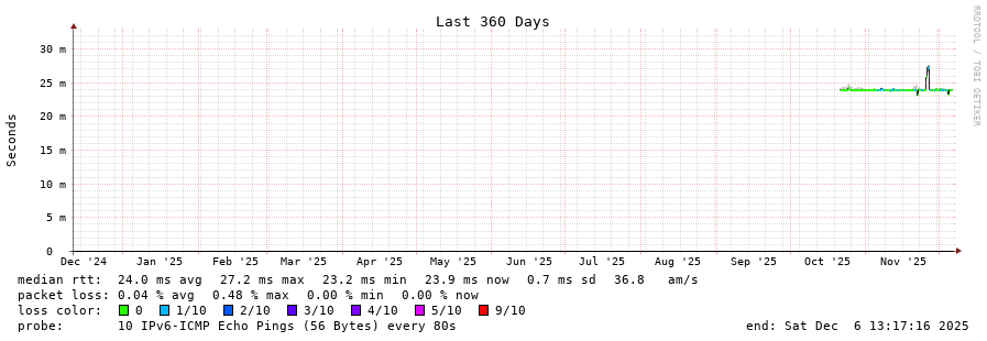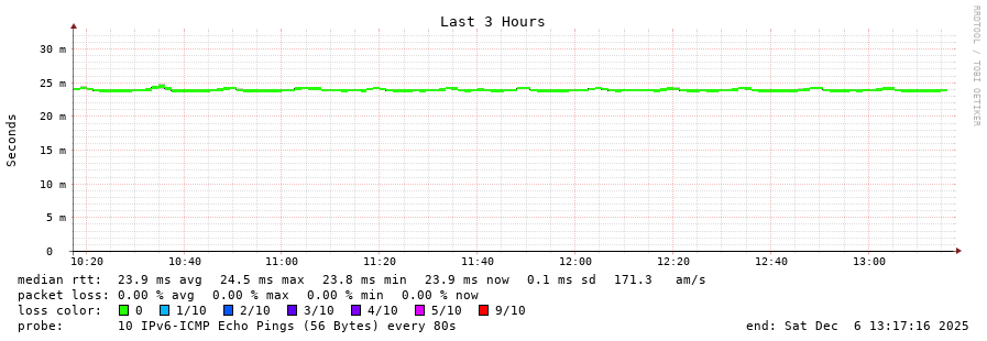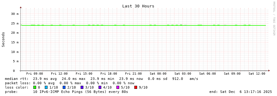 traceroute to 2001:b68:d::28 (2001:b68:d::28), 30 hops max, 80 byte packets - Generated at 2025-12-06 13:00:01