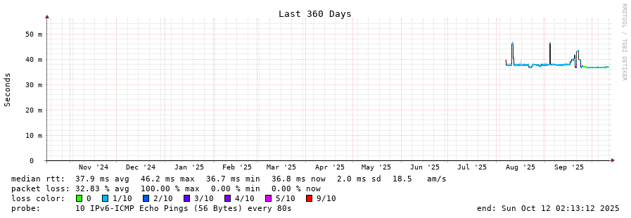 traceroute to 2001:35c0::204:27:68:152 (2001:35c0::204:27:68:152), 30 hops max, 80 byte packets - Generated at 2025-10-12 02:00:01