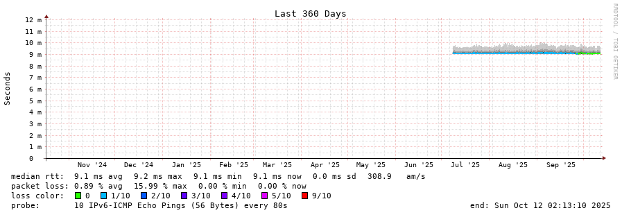 traceroute to 2a01:4f8:d0a:529e::2 (2a01:4f8:d0a:529e::2), 30 hops max, 80 byte packets - Generated at 2025-10-12 02:00:01