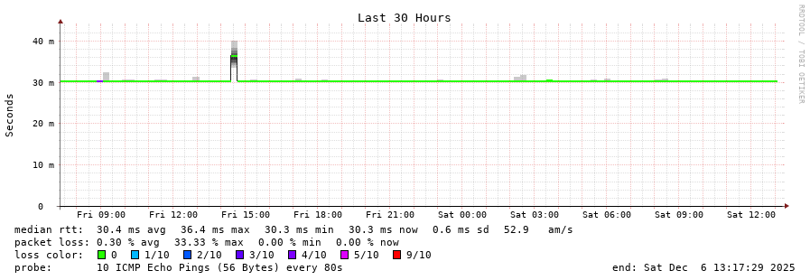 traceroute to 141.85.160.26 (141.85.160.26), 30 hops max, 60 byte packets - Generated at 2025-12-06 13:00:01