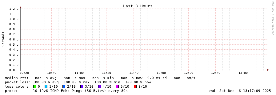 traceroute to fd69:226f:3a3c::2 (fd69:226f:3a3c::2), 30 hops max, 80 byte packets - Generated at 2025-12-06 13:00:01