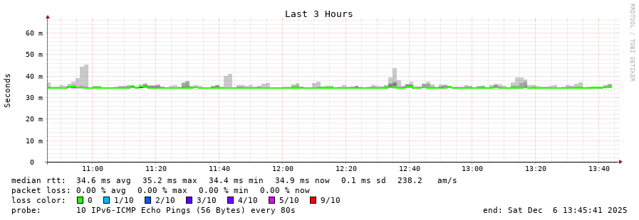 13 > 2001:67c:1e0:0:c225:e9ff:fea8:6a0a (2001:67c:1e0:0:c225:e9ff:fea8:6a0a) [AS31554] 34.534ms 34.405ms 34.742ms