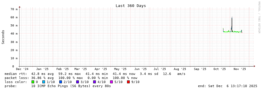 traceroute to 85.114.53.205 (85.114.53.205), 30 hops max, 60 byte packets - Generated at 2025-12-06 13:00:01