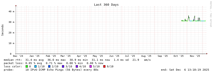 traceroute to 2a0c:ca80::41 (2a0c:ca80::41), 30 hops max, 80 byte packets - Generated at 2025-12-06 13:15:02