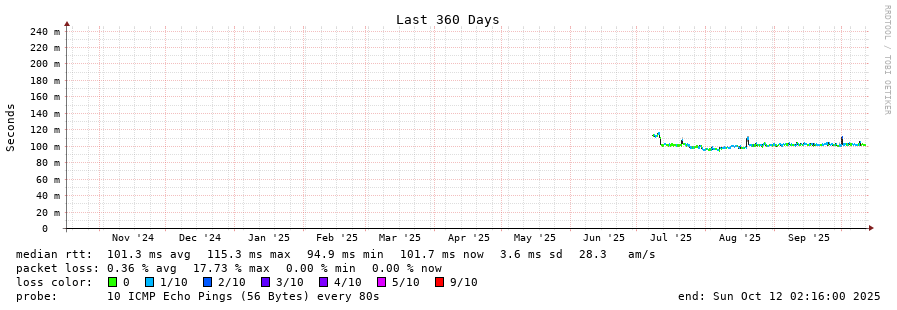 15 > 158.46.224.3 (158.46.224.3) [AS39927] 101.374ms 100.976ms 101.132ms