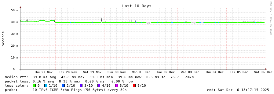 traceroute to 2a0b:2f00:0:234::151 (2a0b:2f00:0:234::151), 30 hops max, 80 byte packets - Generated at 2025-12-06 13:00:01