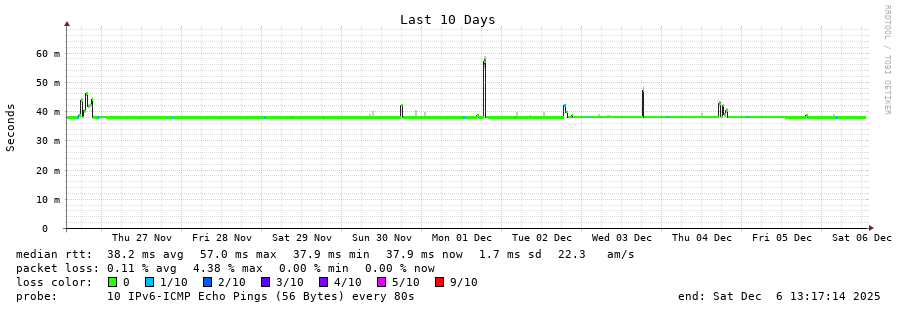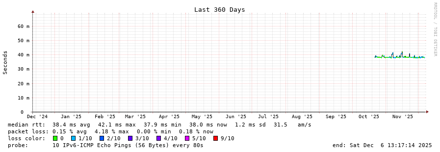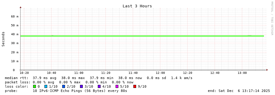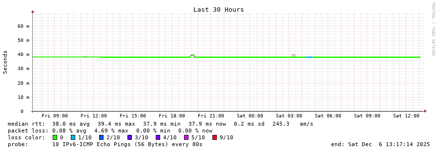 traceroute to 2a03:8f84::f1b6:9702:29c:9062 (2a03:8f84::f1b6:9702:29c:9062), 30 hops max, 80 byte packets - Generated at 2025-12-06 13:00:01
