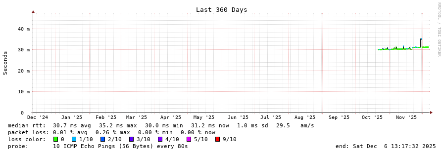 traceroute to 86.107.73.26 (86.107.73.26), 30 hops max, 60 byte packets - Generated at 2025-12-06 13:00:01