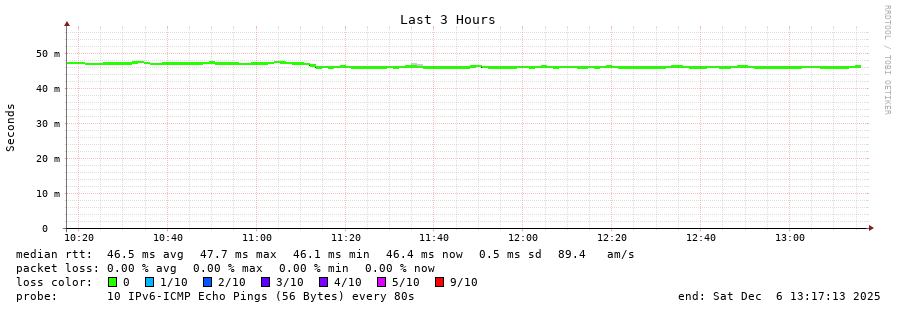 13 > 2001:67c:10:1102::11 (2001:67c:10:1102::11) [AS60149] 46.137ms 46.094ms 46.166ms