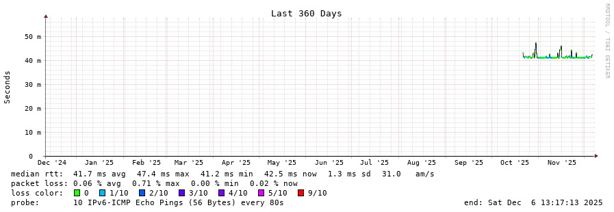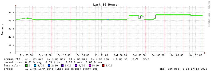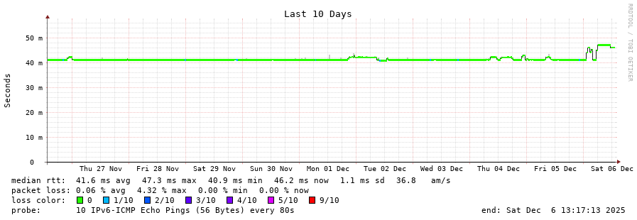 traceroute to 2001:67c:10:1102::11 (2001:67c:10:1102::11), 30 hops max, 80 byte packets - Generated at 2025-12-06 13:00:01