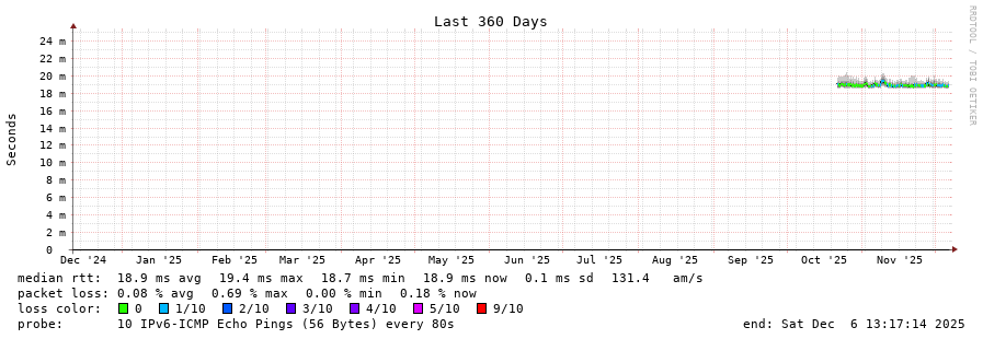 traceroute to 2a03:bb40:1::b (2a03:bb40:1::b), 30 hops max, 80 byte packets - Generated at 2025-12-06 13:00:01