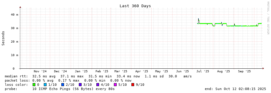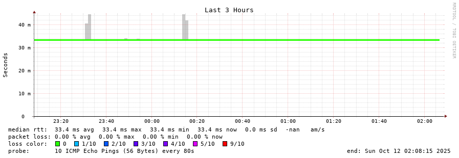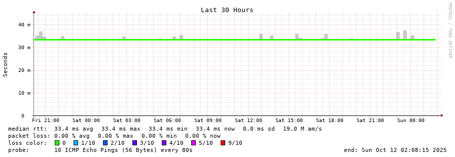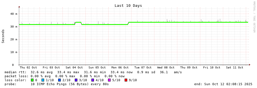 10 > 212.200.7.69 (212.200.7.69) [AS8400] 33.792ms 33.732ms 33.904ms
