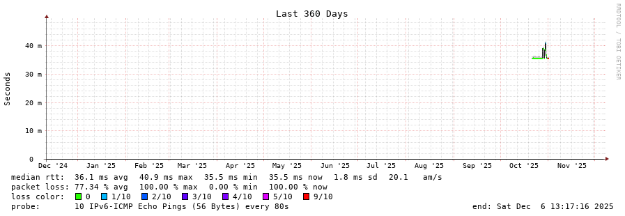 traceroute to 2a02:2f05:2113:7f00:220:4aff:fee0:220f (2a02:2f05:2113:7f00:220:4aff:fee0:220f), 30 hops max, 80 byte packets - Generated at 2025-12-06 13:15:02