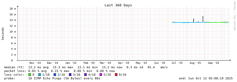 traceroute to proof.ovh.net (141.95.207.211), 30 hops max, 60 byte packets - Generated at 2025-10-12 05:00:01