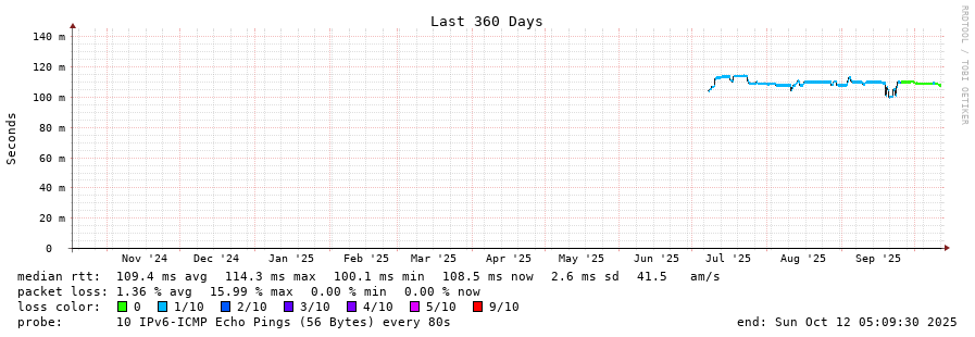 traceroute to 2607:5300:300:1f00:: (2607:5300:300:1f00::), 30 hops max, 80 byte packets - Generated at 2025-10-12 05:00:01