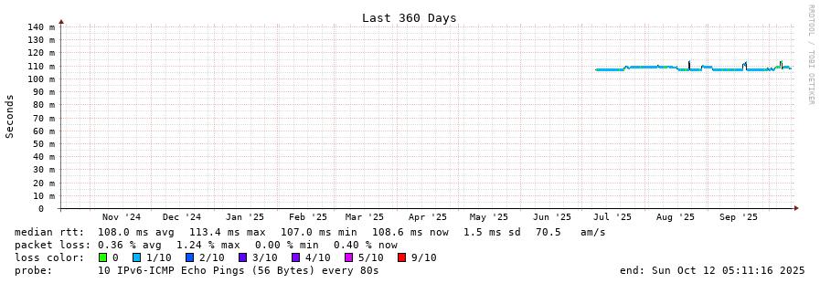 12 > 2604:2dc0:304::2:0:1ce (2604:2dc0:304::2:0:1ce) [AS16276] 109.166ms 109.141ms 109.136ms