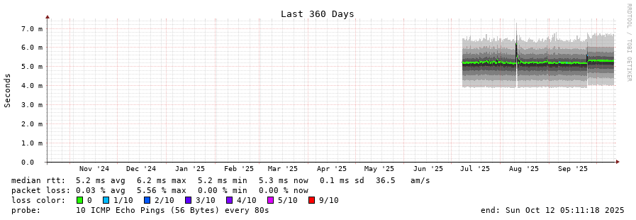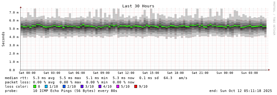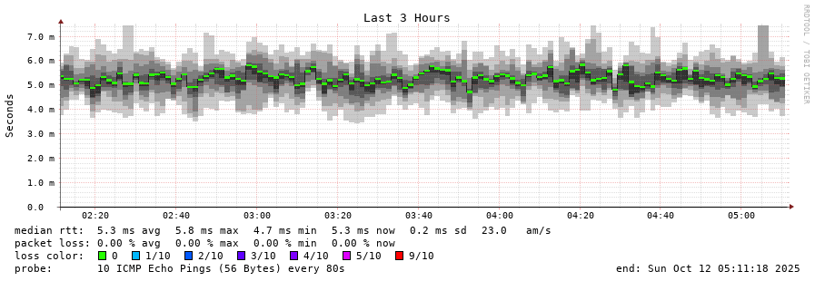 traceroute to 91.121.131.235 (91.121.131.235), 30 hops max, 60 byte packets - Generated at 2025-10-12 05:00:01 3 > 4 > 5 > 6 > zrh-zur1-pb1-8k.ch.eu (91.121.131.235) [AS16276] 4.957ms 5.848ms 6.072ms