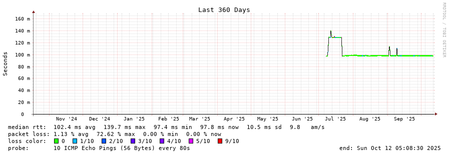 traceroute to 142.44.208.99 (142.44.208.99), 30 hops max, 60 byte packets - Generated at 2025-10-12 05:00:01