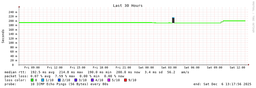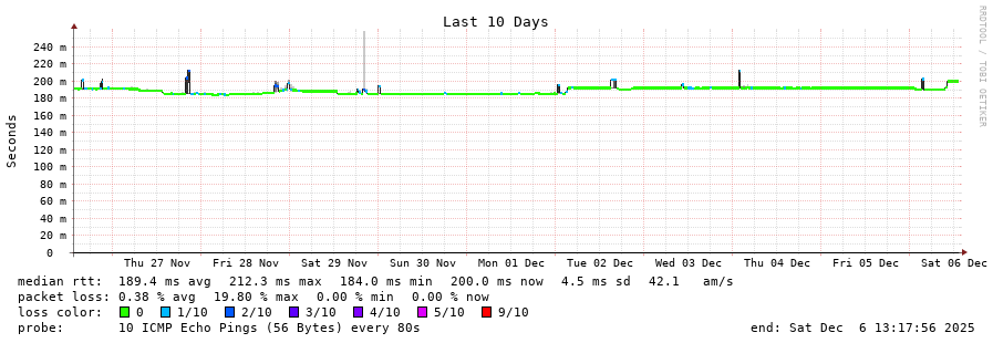 12 > 189.84.64.170 (189.84.64.170) [AS262773] 199.765ms 200.409ms 199.776ms