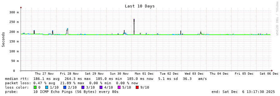 13 > 186.219.148.124 (186.219.148.124) [AS28270/AS262992] 185.191ms 185.183ms 185.181ms