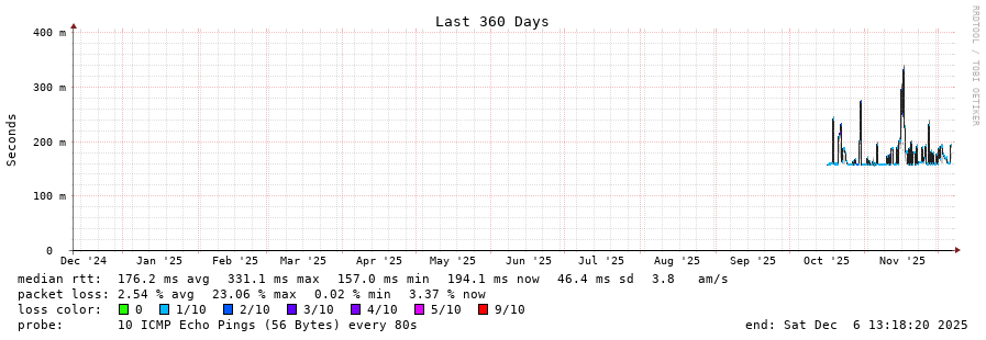 11 > 179.51.112.214 (179.51.112.214) [AS263210] 159.855ms 159.668ms 159.455ms