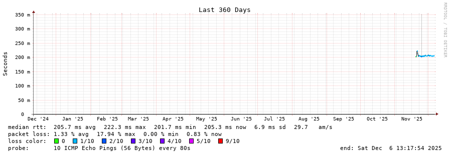 traceroute to 45.177.211.2 (45.177.211.2), 30 hops max, 60 byte packets - Generated at 2025-12-06 13:00:01
