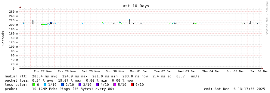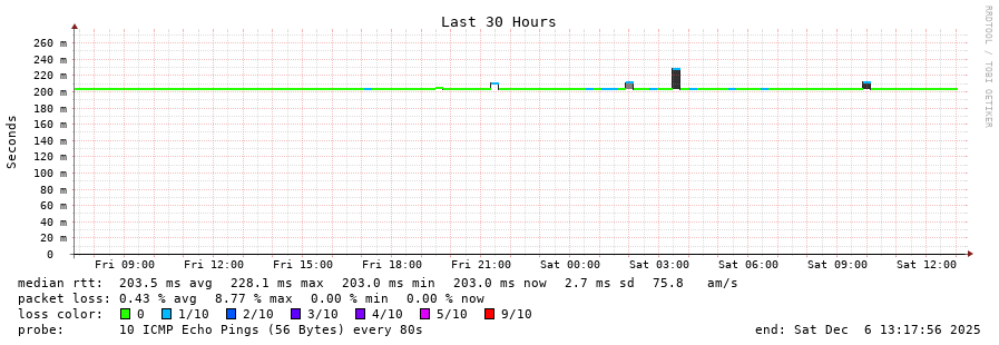 traceroute to 45.177.210.53 (45.177.210.53), 30 hops max, 60 byte packets - Generated at 2025-12-06 13:00:01