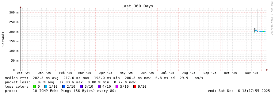 traceroute to 45.177.208.13 (45.177.208.13), 30 hops max, 60 byte packets - Generated at 2025-12-06 13:00:01
