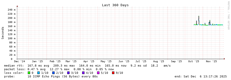 15 > 181.118.152.65 (181.118.152.65) [AS27951] 167.136ms 167.173ms 166.871ms