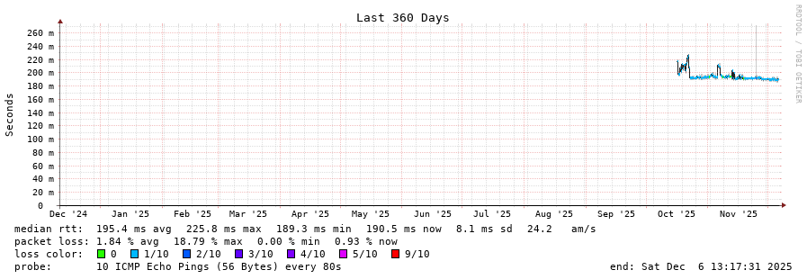 traceroute to 187.109.12.5 (187.109.12.5), 30 hops max, 60 byte packets - Generated at 2025-12-06 13:00:01
