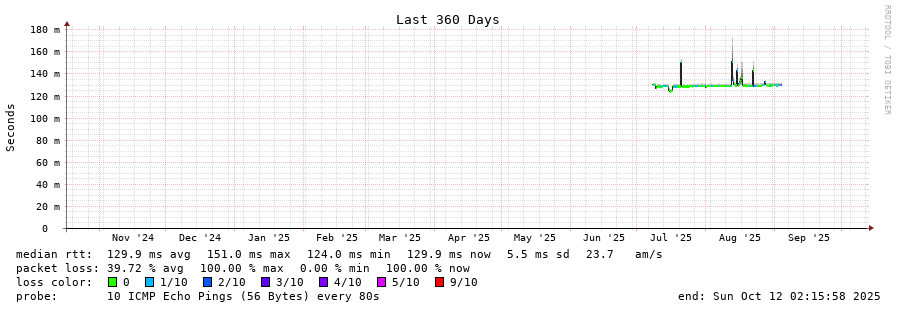 traceroute to 23.237.0.1 (23.237.0.1), 30 hops max, 60 byte packets - Generated at 2025-10-12 02:00:01