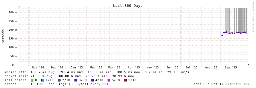 traceroute to 174.68.181.176 (174.68.181.176), 30 hops max, 60 byte packets - Generated at 2025-10-12 02:00:01