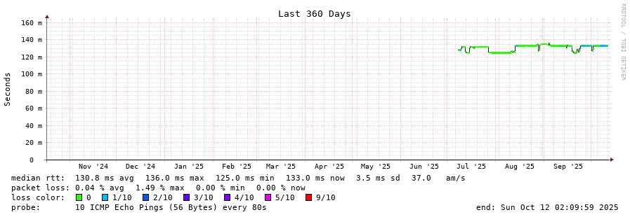 traceroute to 69.134.147.7 (69.134.147.7), 30 hops max, 60 byte packets - Generated at 2025-10-12 02:00:01